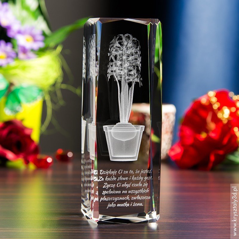 Piękny kryształ 3D z wygrawerowanym modelem 3D hiacyntu. Dodaj do niej własną dedykację, słowa płynące prosto z serca i spraw zachwyt w oczach bliskiej osoby...