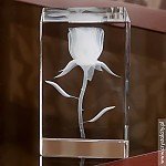 Tak prezentuje się Róża 3D » Elegancji « wygrawerowana w statuetce o wymiarach 8x5x5 cm: