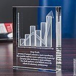 Tak prezentuje się kryształ 3D z motywem wykresu wygrawerowanym w statuetce o wymiarach 12x9x3 cm: