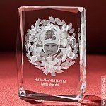 Fotokryształ 2D to statuetka z wygrawerowanym wewnątrz zdjęciem bez dodanej głębi 3D (patrząc z boku grawerunek ułożony jest w jednej płaszczyźnie). O różnicach między zdjęciem 2D a zdjęciem przestrzennym (określanym również jako zdjęcie 2.5D lub 3D) możesz przeczytać w naszym poradniku.